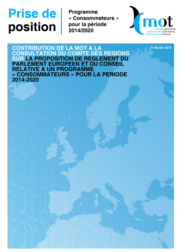 Prise de position / Manifeste Programme « Consommateurs » (CdR) février 2012 Consultation du Comité des Régions sur la proposition de règlement du Parlement et du Conseil relative à un programme "Consommateurs" pour la période 2014-2020.