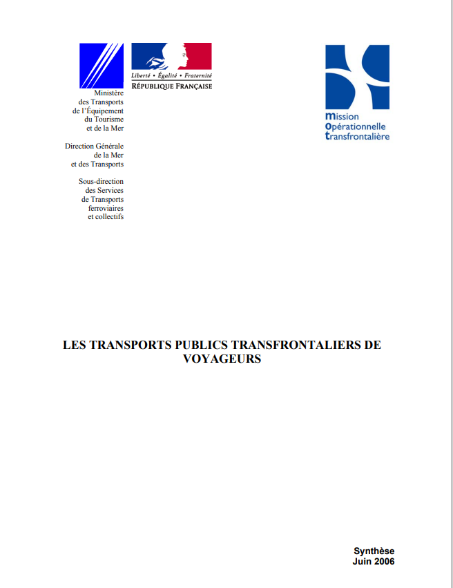 Etude partenariale / nationale Les transports publics transfrontaliers de voyageurs janvier 2006 Etude confiée à la MOT par le Ministère des Transports, de l'Equipement, du Tourisme et de la Mer