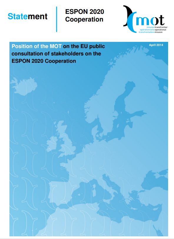Prise de position / Manifeste Coopération ESPON 2020 avril 2014 Contribution de la MOT à la consultation sur le programme ESPON 2020.