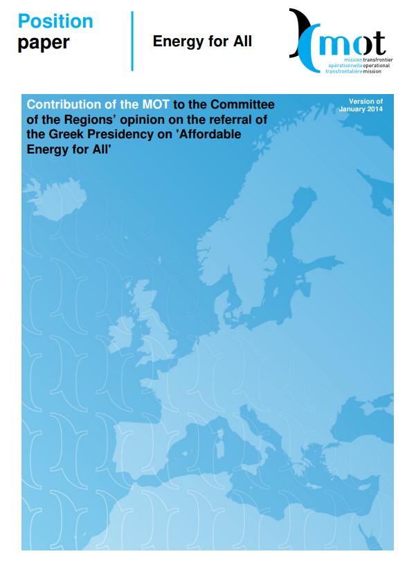 Prise de position / Manifeste L’énergie à la portée de tous janvier 2014 Contribution de la MOT sur l’opinion du Comité des Régions concernant la recommandation de la Présidence Grecque sur l’"Energie à la portée de tous".