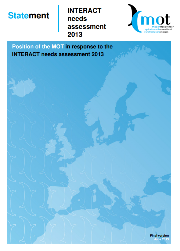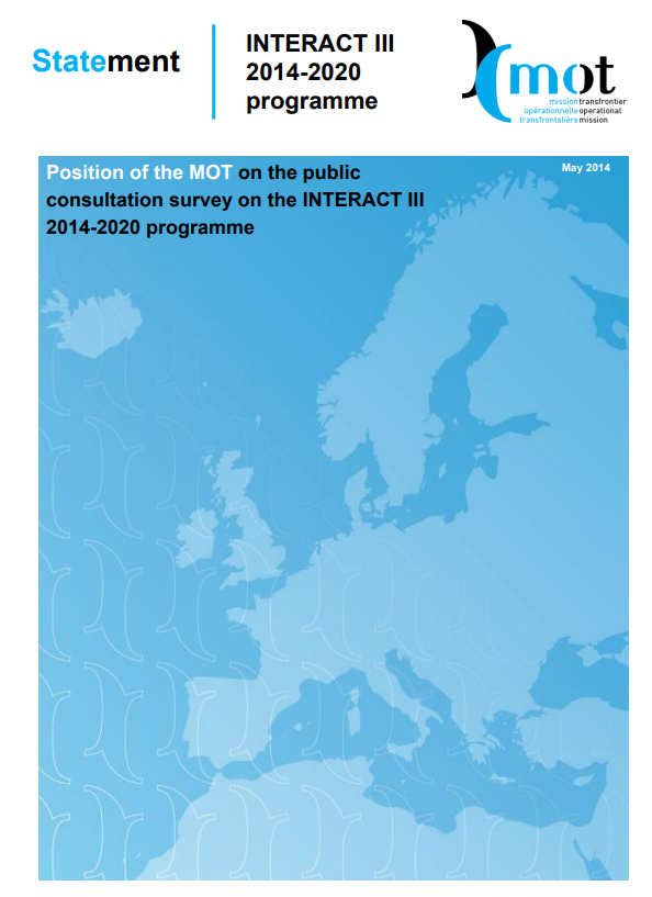 Prise de position / Manifeste Programme Interact III 2014-2020 mai 2014 Réponse de la MOT au questionnaire de consultation publique sur le programme INTERACT III 2014-2020.