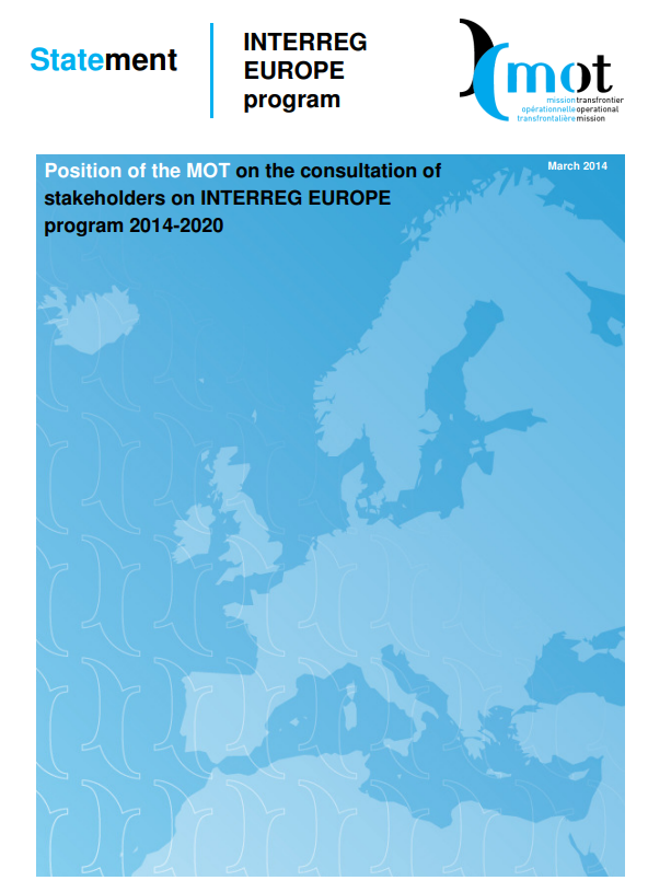 Prise de position / Manifeste Programme INTERREG EUROPE 2014-2020 mars 2014 Contribution de la MOT à la consultation lancée sur la mise en oeuvre du programme INTERREG EUROPE 2014-2020.