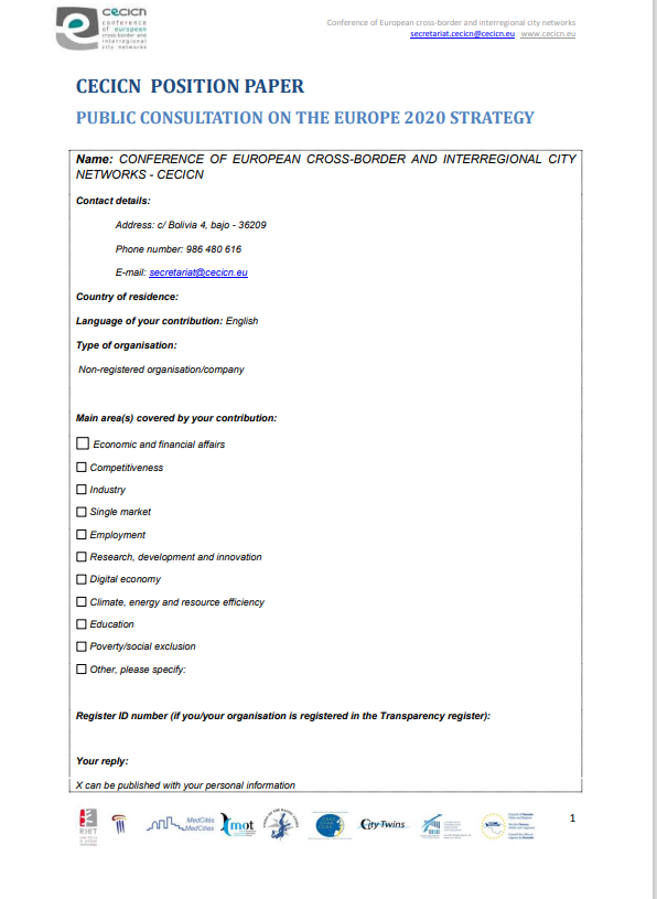 Prise de position / Manifeste Stratégie Europe 2020 septembre 2014 Contribution de la CECICN à la consultation de la Commission européenne sur la stratégie Europe 2020.