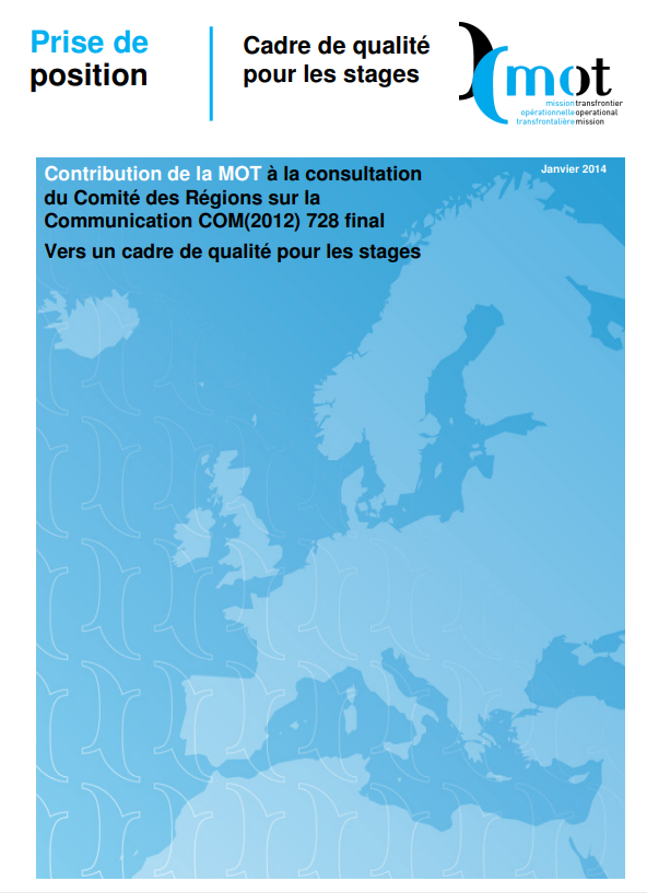 Prise de position / Manifeste Vers un cadre de qualité pour les stages janvier 2014 Contribution de la MOT sur l’opinion du Comité des Régions concernant la proposition de la Commission d’une recommandation du Conseil relative à un cadre de qualité pour les stages, 2014 (FR)