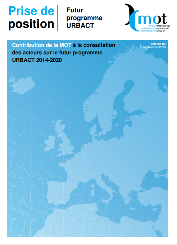 Prise de position / Manifeste Programme Urbact 2014-2020 septembre 2013 Position de la MOT sur le futur programme Urbact 2014-2020.
