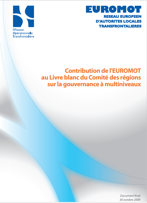 Prise de position / Manifeste Livre blanc sur la gouvernance multiniveaux (CdR) octobre 2009 A l'automne 2009, le Comité des Régions a lancé une consultation publique sur son livre blanc sur la gouvernance multiniveaux. Celui-ci vise à associer toujours plus les collectivités territoriales dans la mise en œuvre des politiques communautaires. La contribution MOT, envoyée au Comité des Régions en décembre 2009, vise une meilleure prise en compte des spécificités transfrontalières.