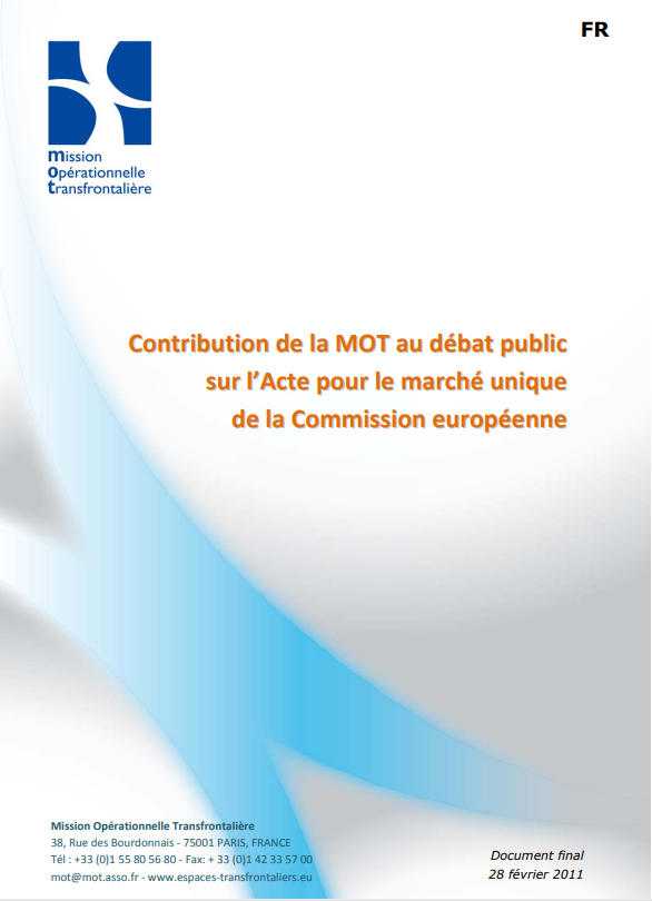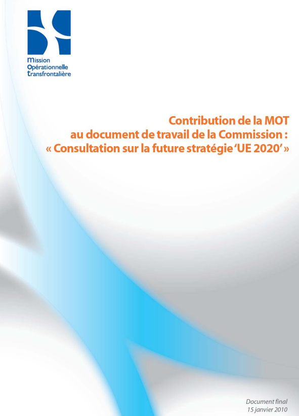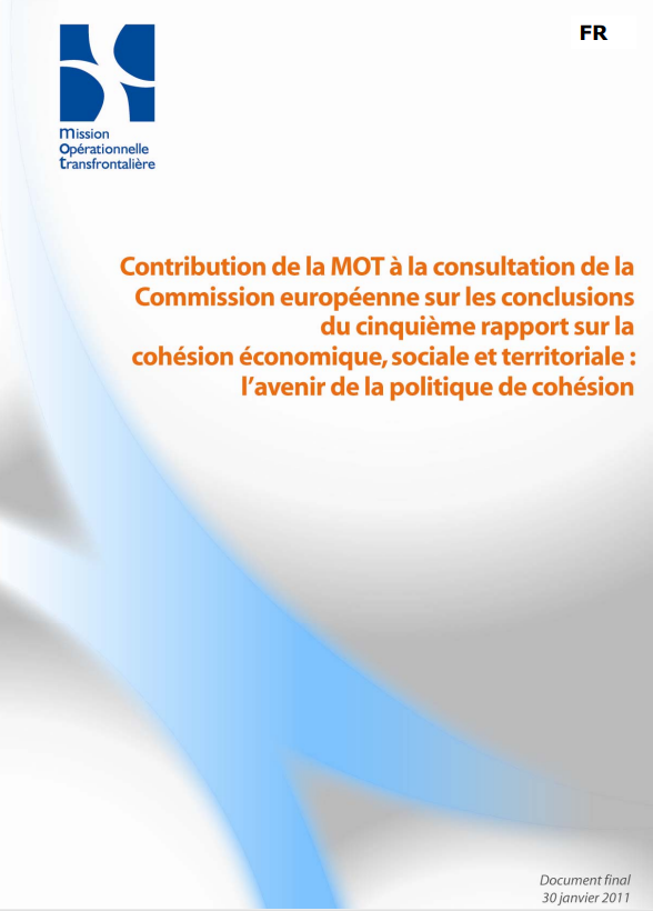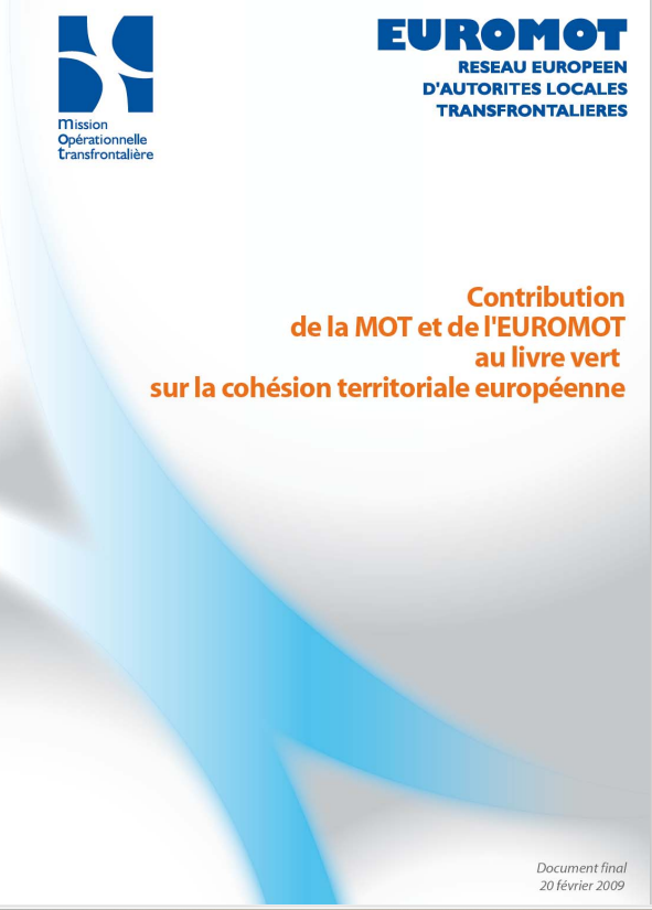 Prise de position / Manifeste Livre vert sur la cohésion territoriale (CE) février 2009 Consultation lancée par la Commission européenne entre octobre 2008 et février 2009 concernant le Livre vert sur la cohésion territoriale qui a ouvert le débat sur l’avenir de la politique de cohésion en Europe. La contribution de la MOT vise à mieux faire prendre en compte les besoins et spécificités des territoires transfrontaliers, qui constituent des "laboratoires" de la convergence des politiques et des législations nationales et européennes.