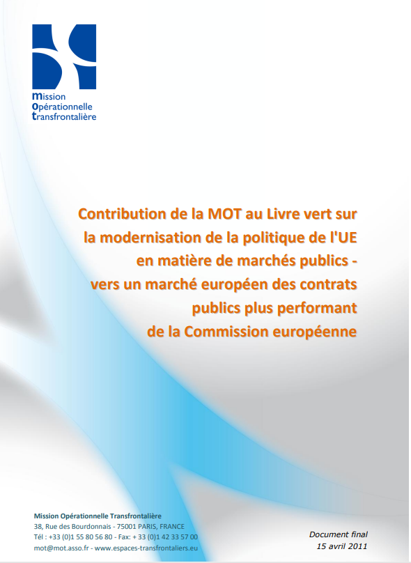 Prise de position / Manifeste Livre vert sur la modernisation de la politique UE en matière de marchés publics (CE) avril 2011 Contribution au Livre vert sur la modernisation de la politique de l'UE en matière de marchés publics - Vers un marché européen des contrats publics plus performant de la Commission européenne.